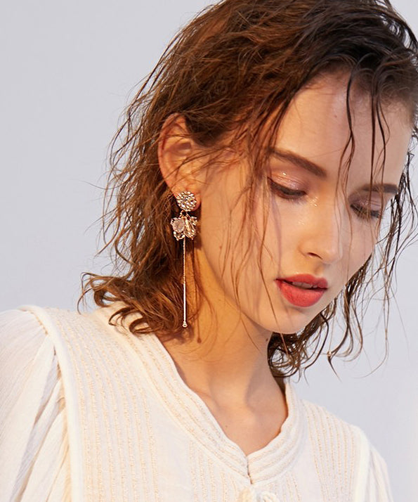 Handmade Gold Zircon Crystal Tassels Alloy Drop Earrings