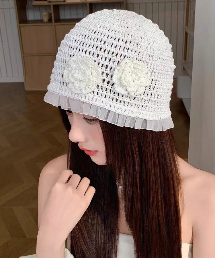 Handmade White Lace Flower Hollow Out Boonie Hat