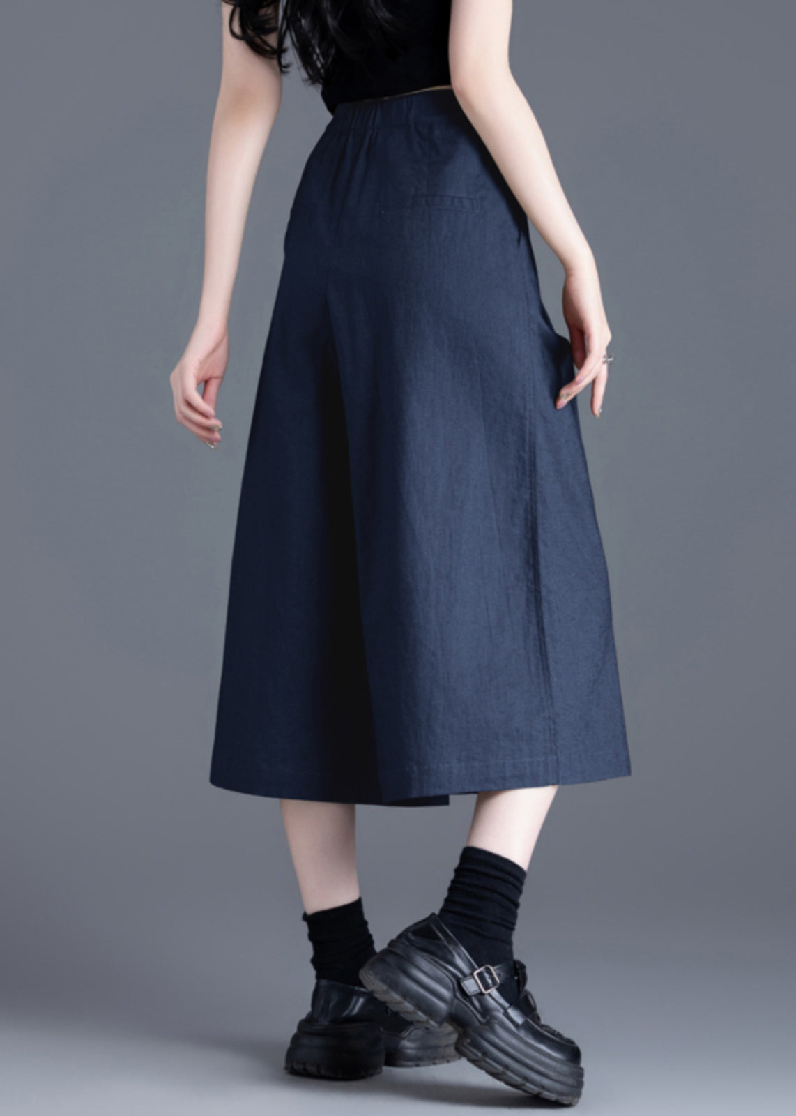 French Navy Oversized Wrinkled Denim Wide Leg Skirt Spring