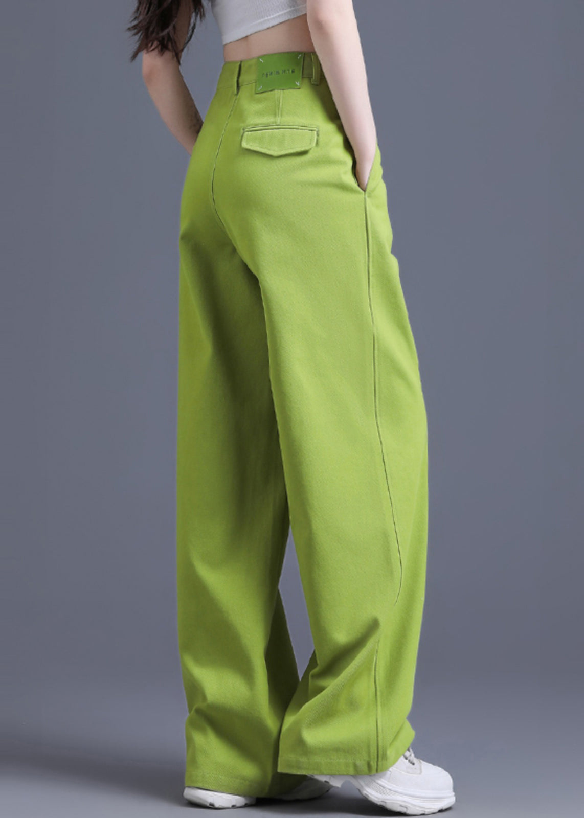 Modern Fruit Green High Waist Cotton Wide Leg Pants Spring