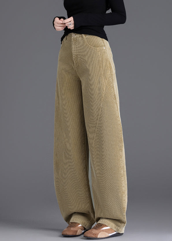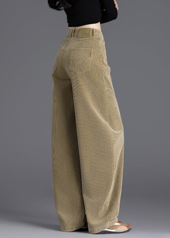 Army Green Warm Fleece Corduroy Pant Oversized High Waist Spring