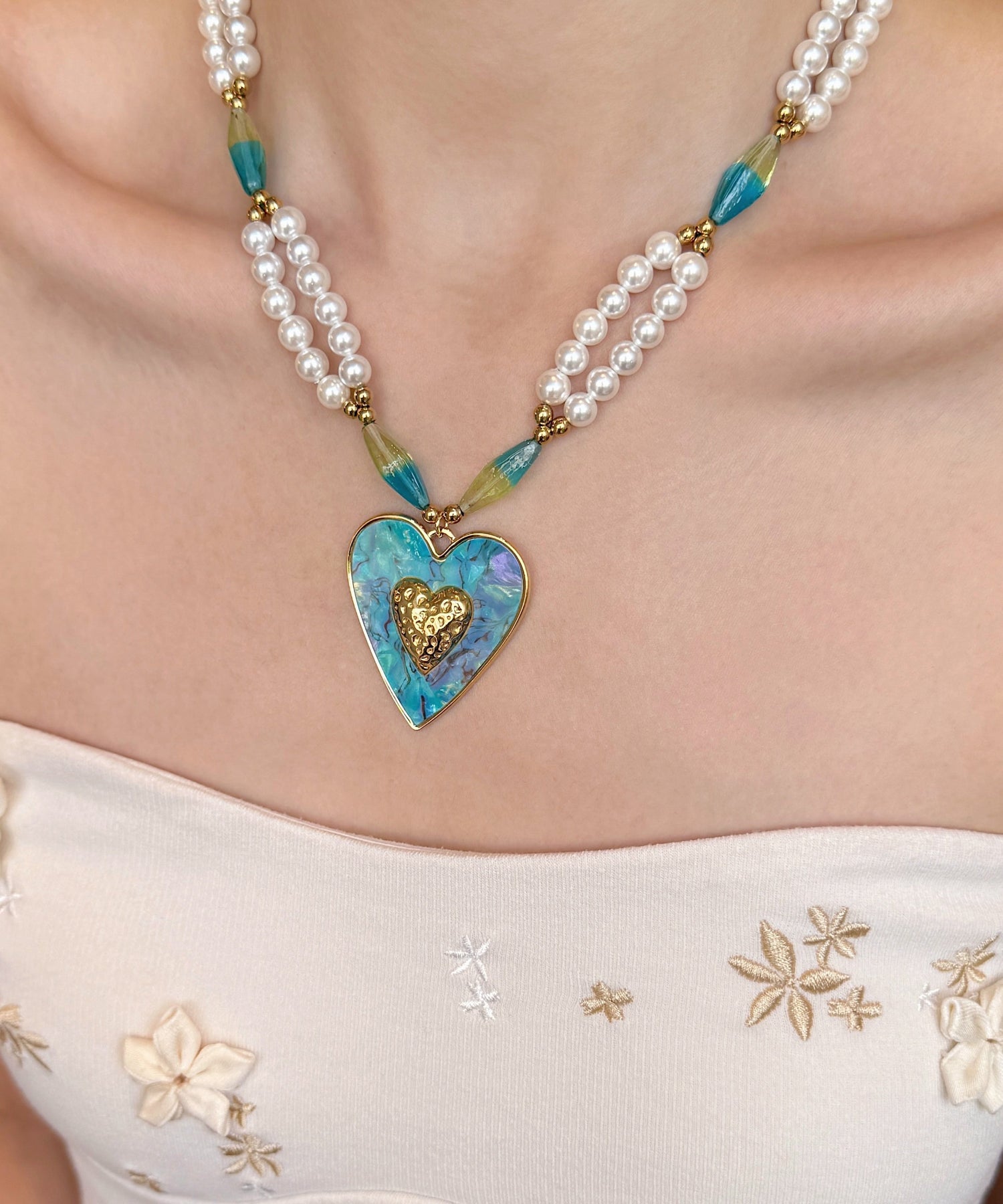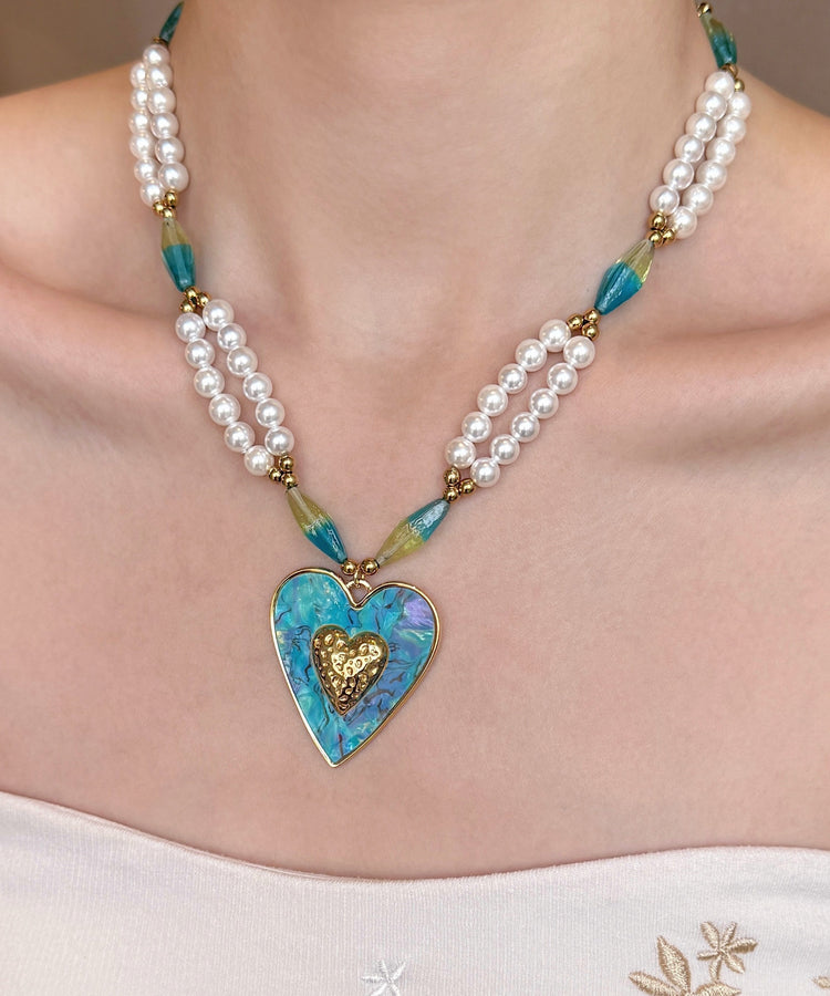 Beautiful Blue Love Pearl Adjustable Alloy Pendant Necklace