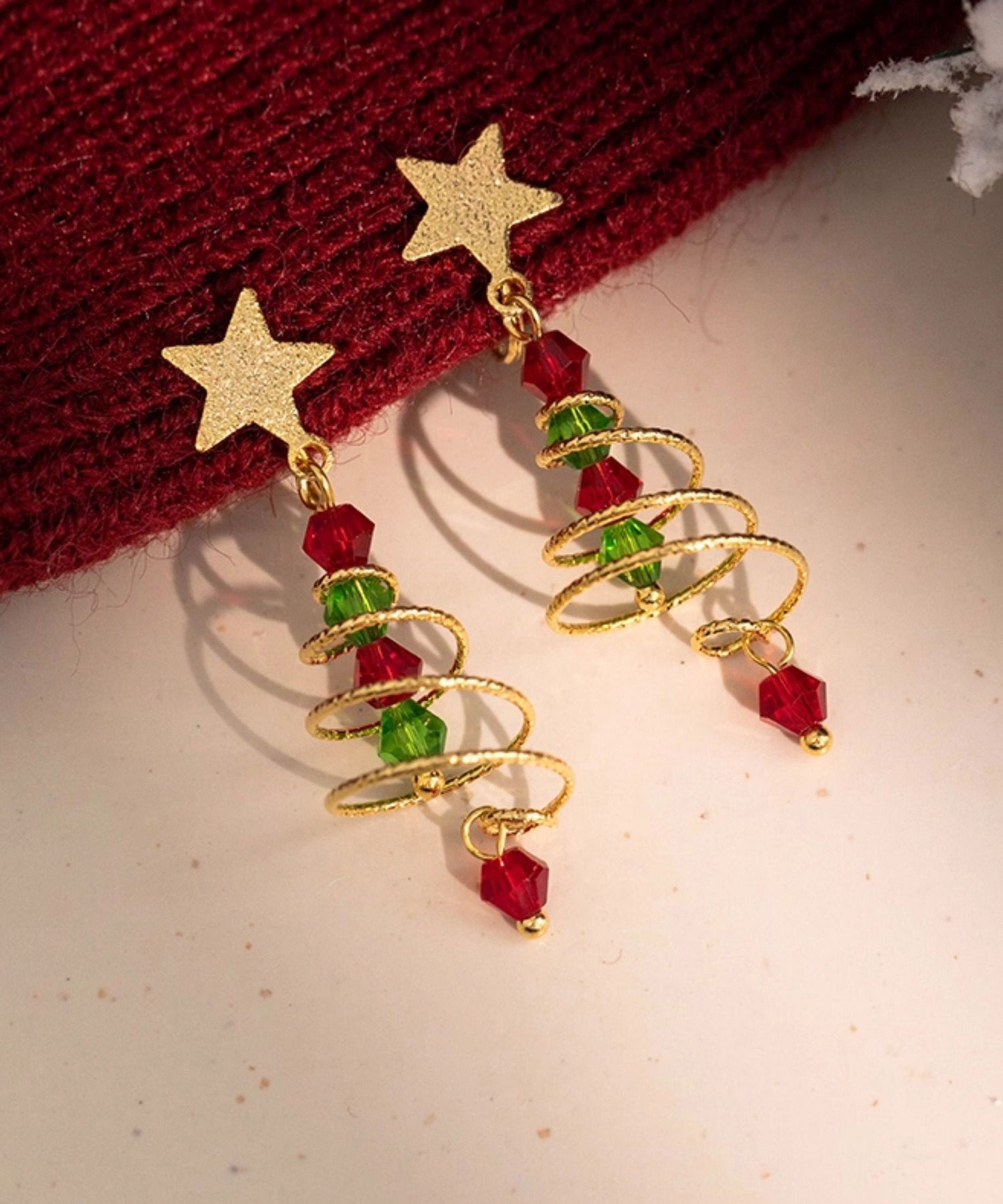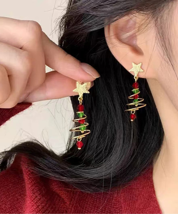 Boutique Spiral Christmas Tree Star Gilding Stud Earrings