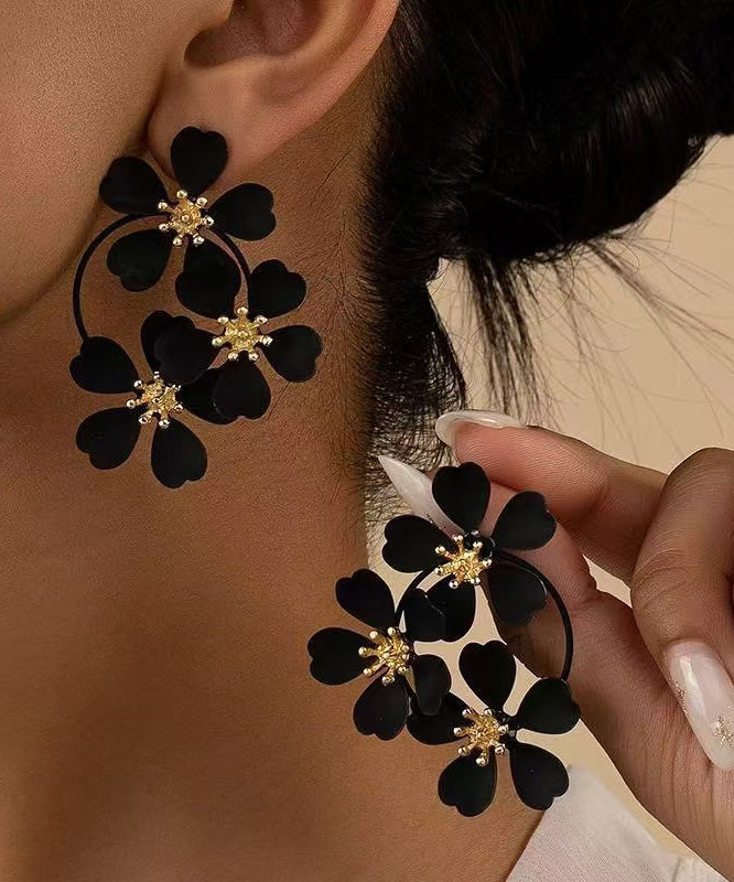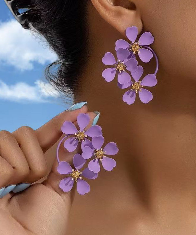 European And American Fashion Pink Flower Metal Earrings