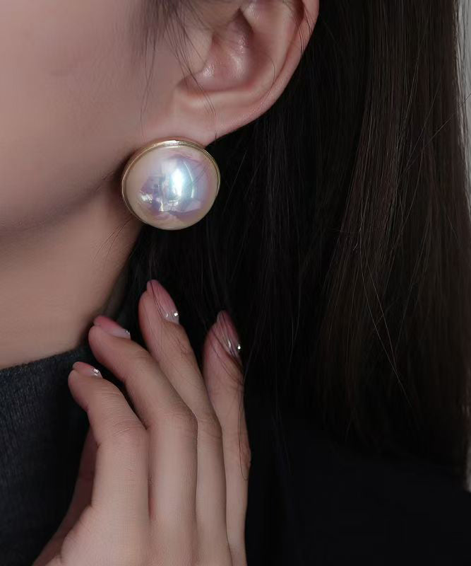 Regular White Sterling Silver Overgild Pearl Stud Earrings