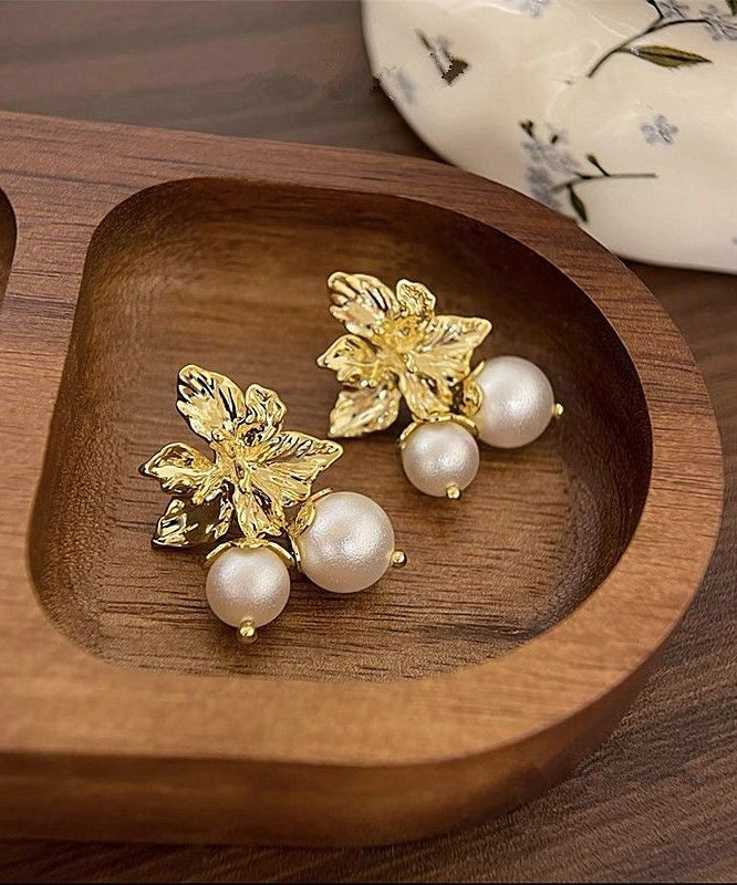 Boutique Gold Copper Overgild Pearl Floral Stud Earrings