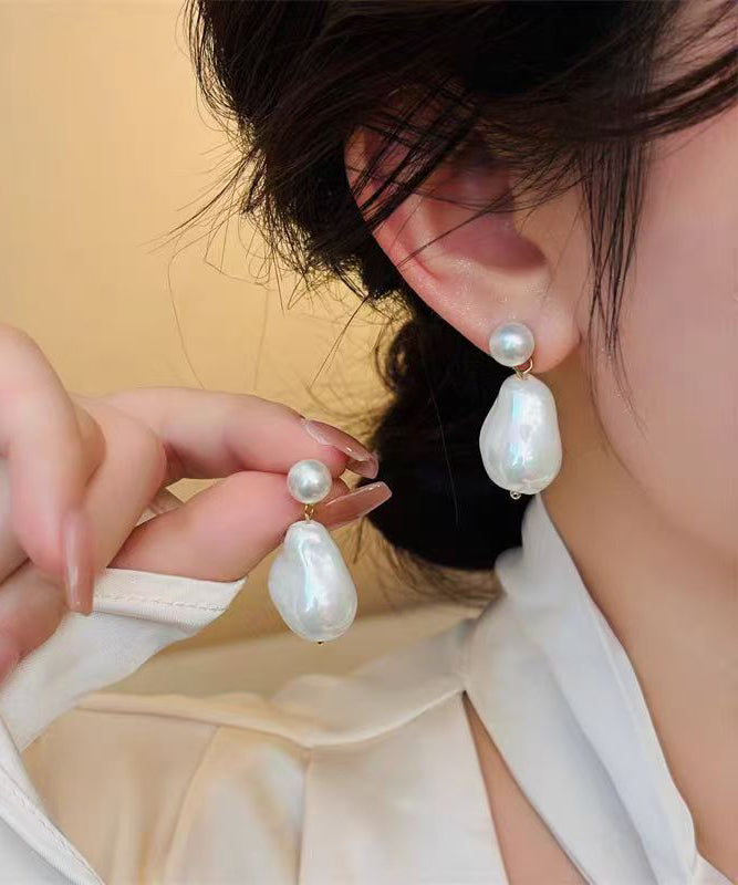 Chic White Copper Overgild Asymmetrical Pearl Drop Earrings