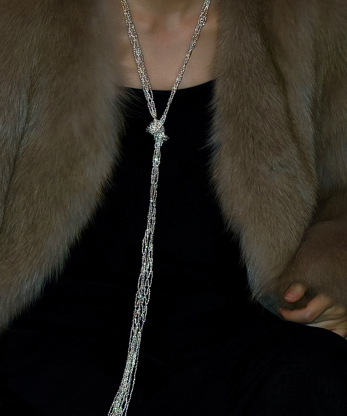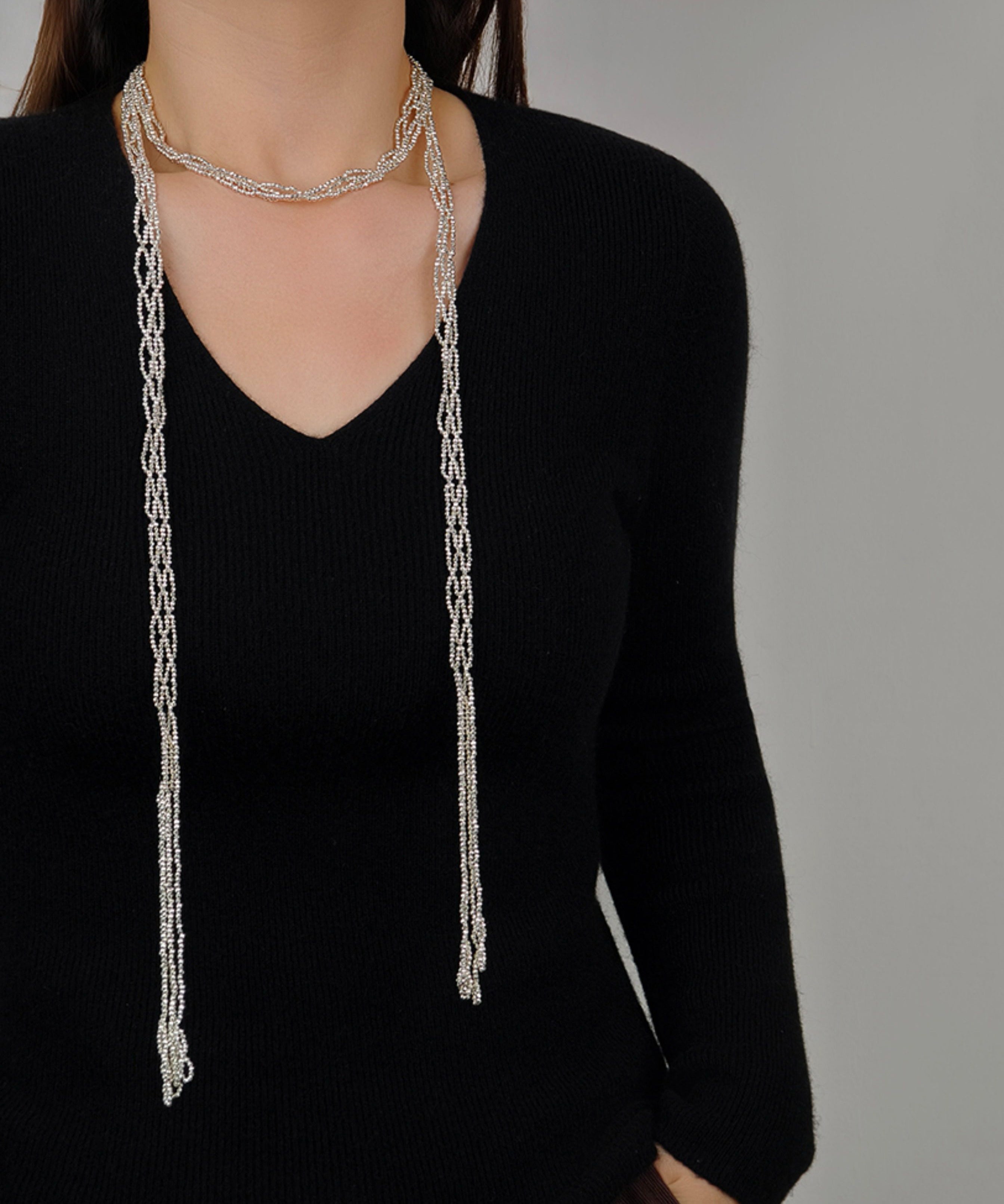 Handmade Silk Mletal Double-Layer Weave Tassel Gratuated Bead Necklace