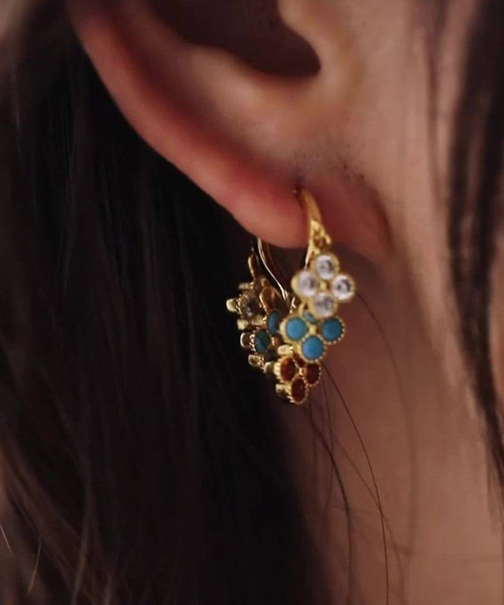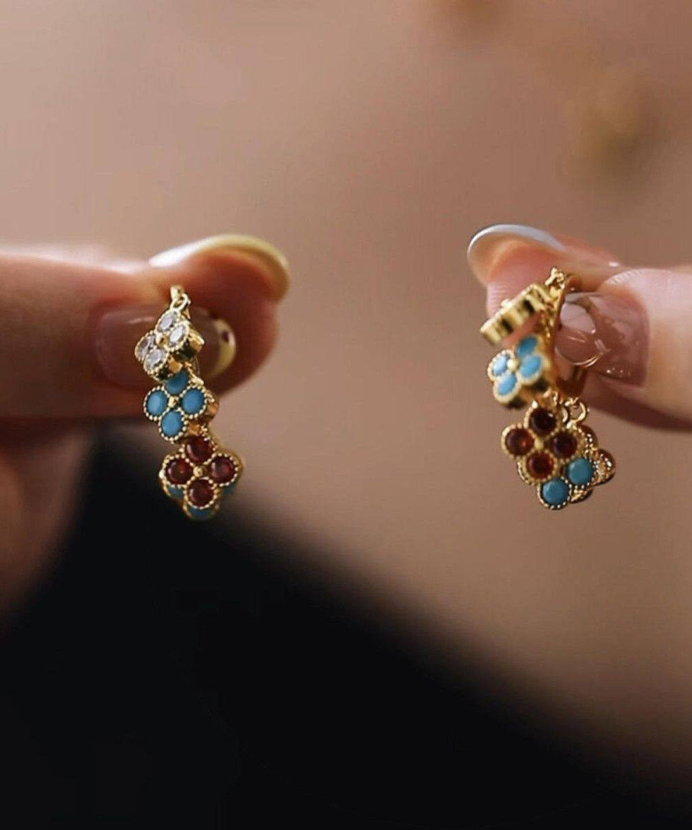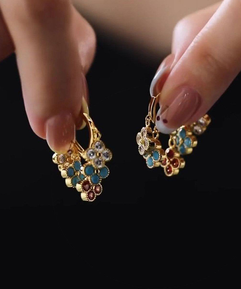 Fine Gold Copper Overgild Zircon Floral Stud Earrings