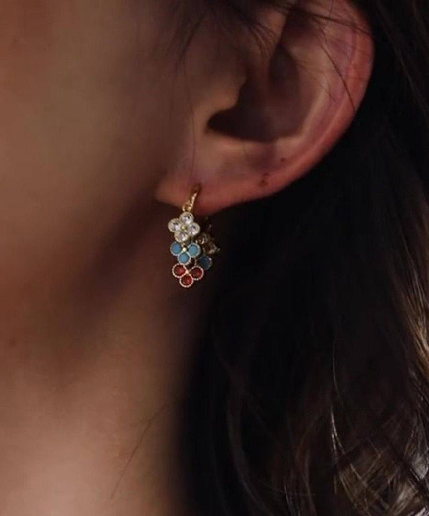 Retro Blue Copper Overgild Cloisonne Dripping Glaze Hoop Earrings