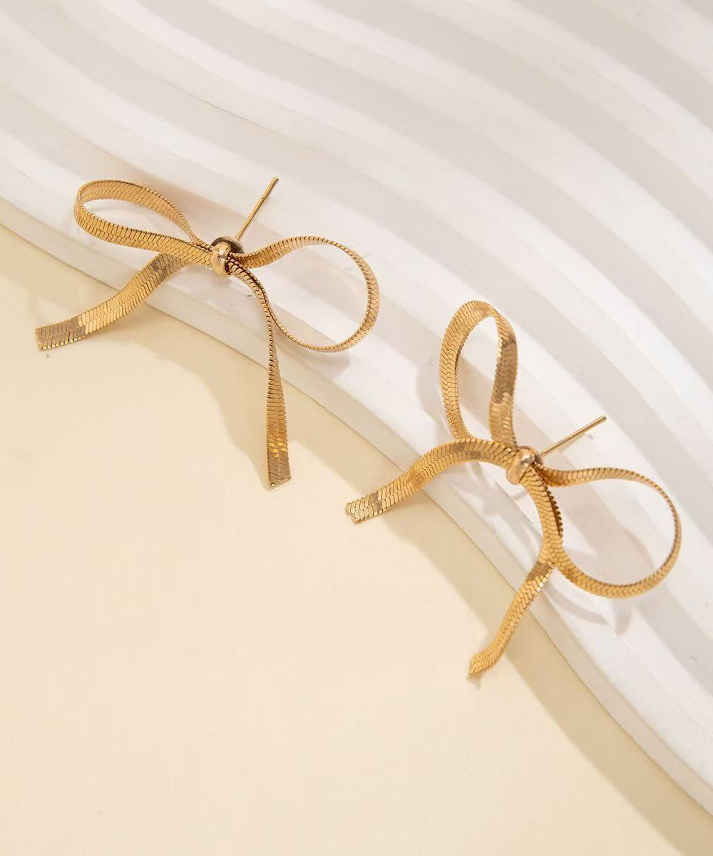 Modern Gold Metal Overgild Bow Tassel Hoop Earrings