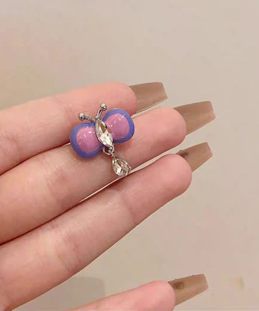 New Purple Butterfly Zircon Ear Bone Clip Earrings