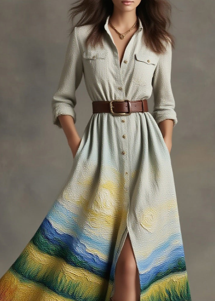 New Peter Pan Collar Print Cotton Button Shirts Dress Spring
