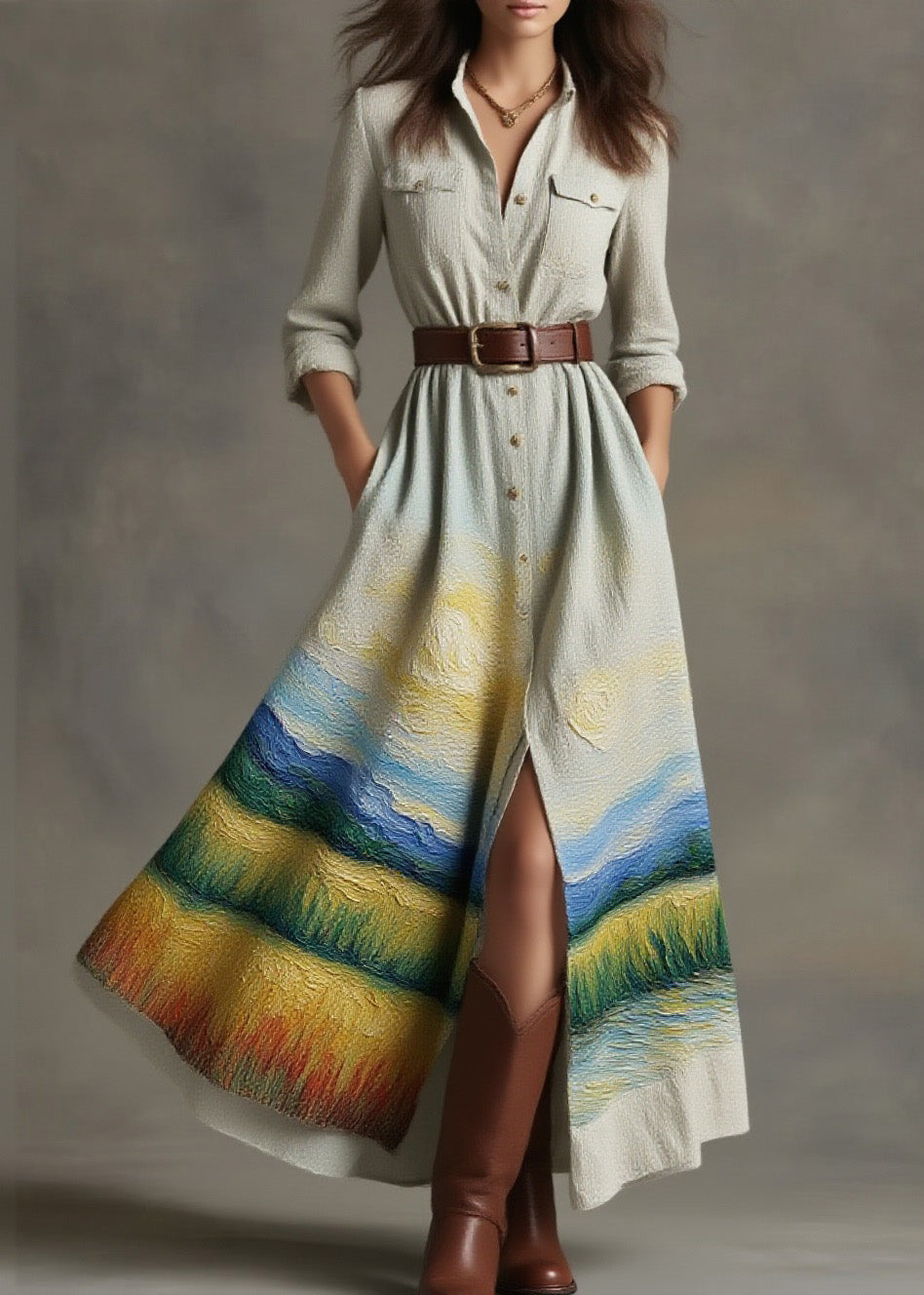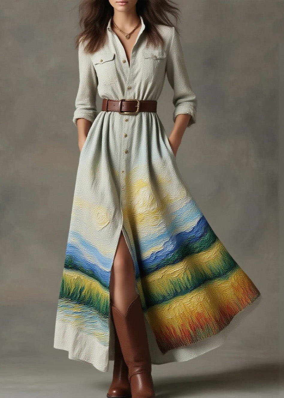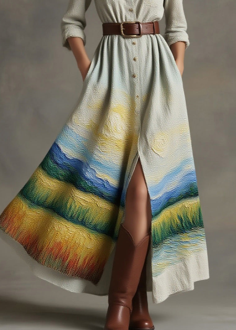 Modern Champagne Print Patchwork Side Open Silk Vacation Dresses Sleeveless