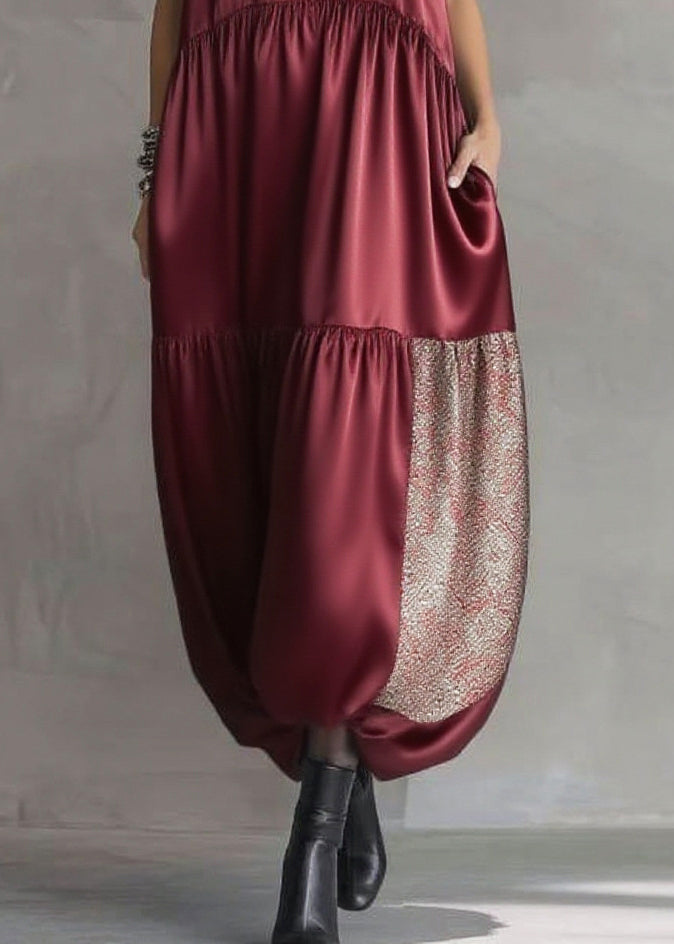 Boho Mulberry Sequins Patchwork Silk Long Dress Sleeveless