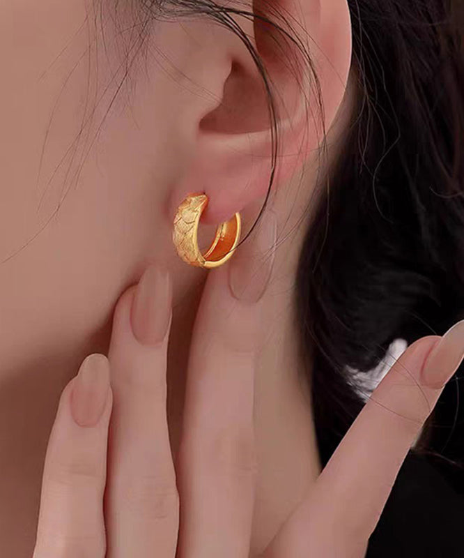 Fine Gold Copper Alloy Fish Scale Hoop Earrings