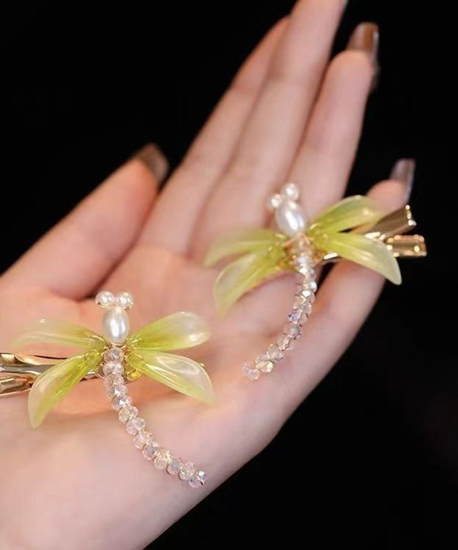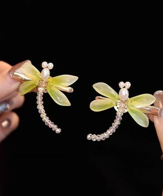 Chinese Style Light Green Colored Glaze Dragonfly A Pair Hairpin
