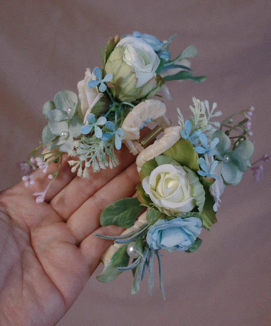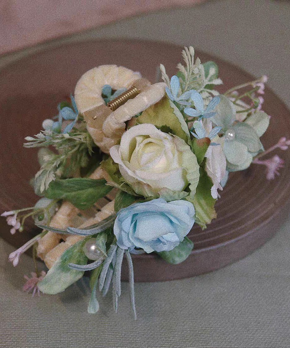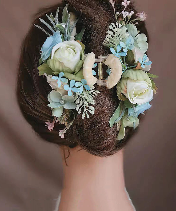 Chinese Style Blue Alloy Silk Floral Pealr Tassel Hairpin