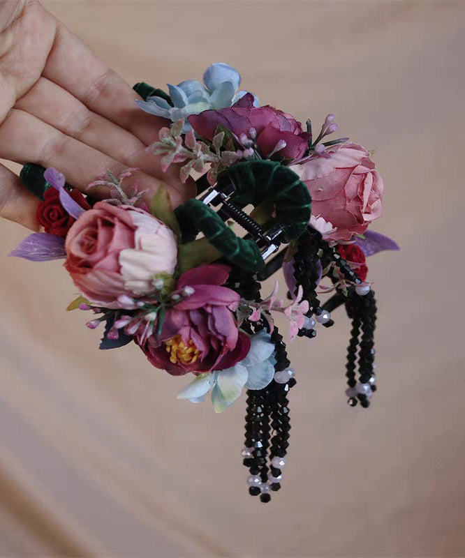 Cute Rainbow Alloy Cloth Floral Tassel Hairpin