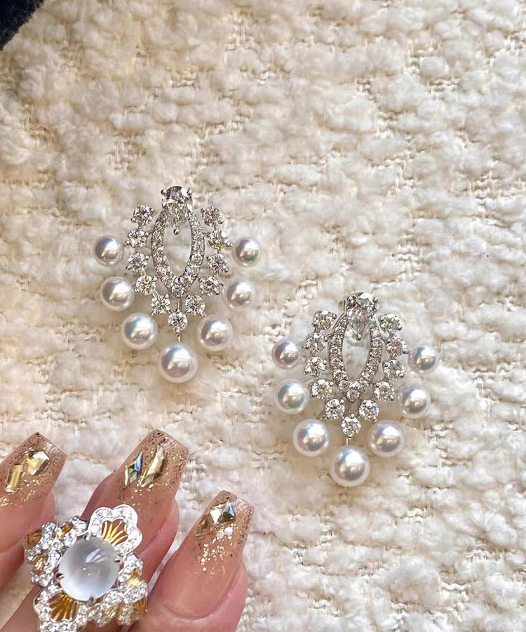 Stylish Silk Sterling Silver Zircon Pearl Hoop Earrings