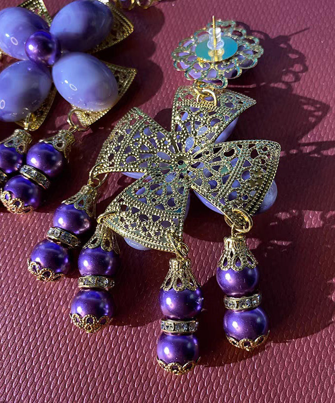Gradient Color Purple Sterling Silver Overgild Floral Shell Tassel Drop Earrings