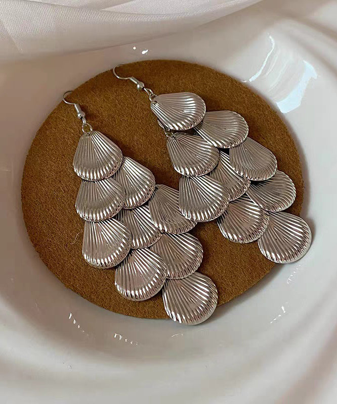 Loose Silk Metal Sequins Shell Tassel Drop Earrings