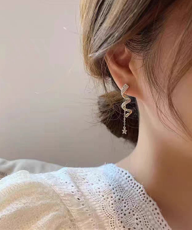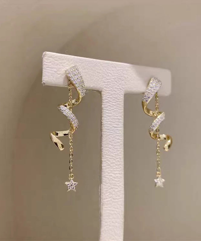 New Silk Sterling Silver Overgild Inlaid Zircon Star Tassel Drop Earrings