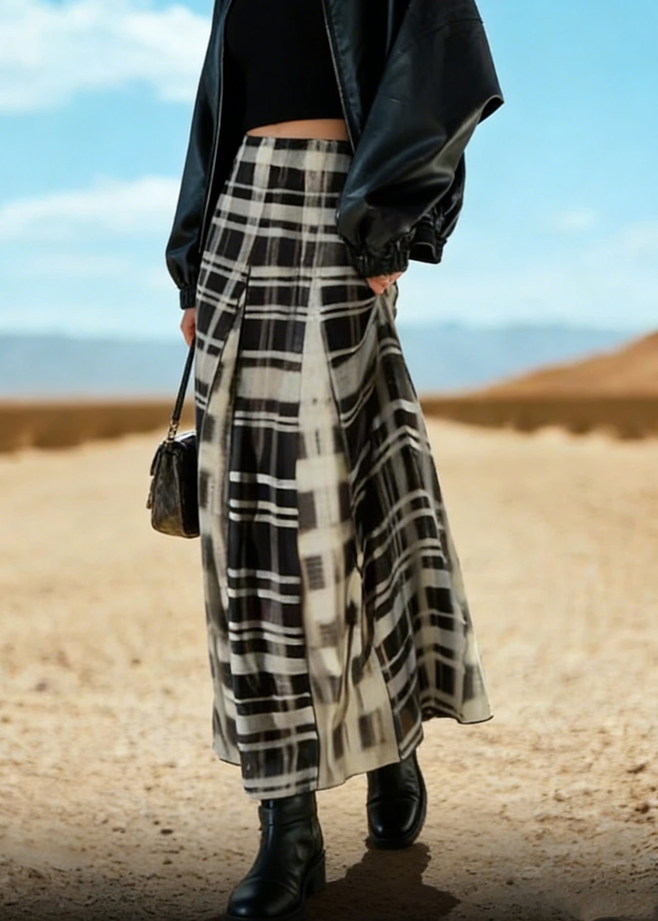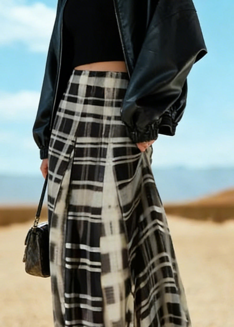 Chic Black White Plaid A Line Skirt Spring