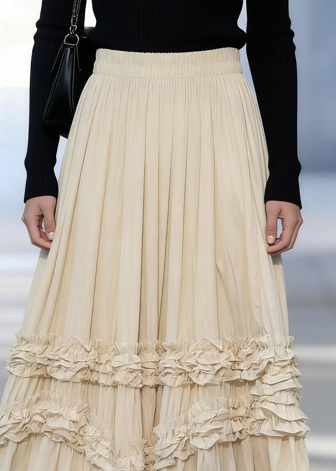 Apricot Ruffled Patchwork Elastic Waist Maxi Skirts