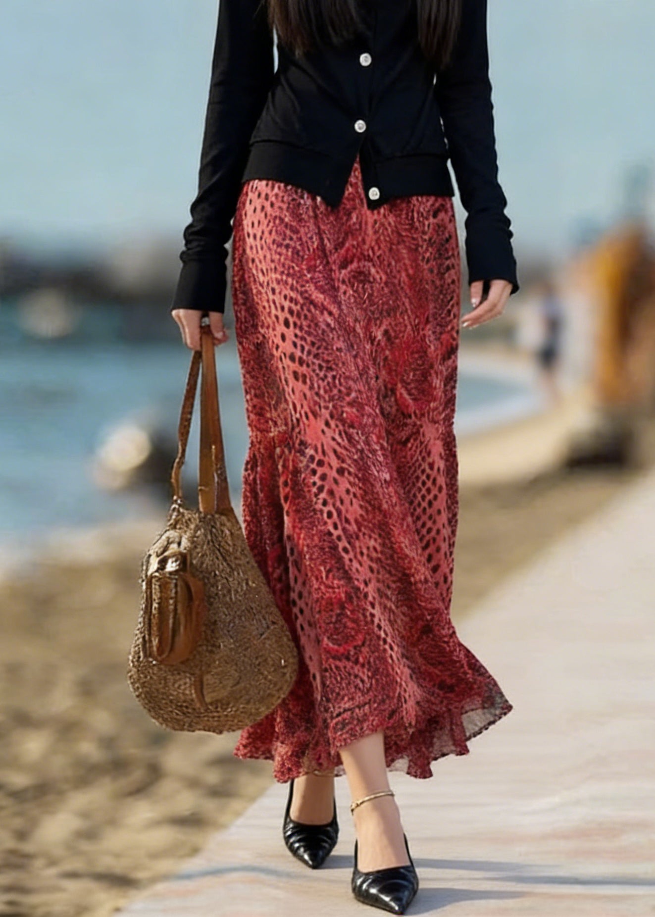 Novelty Red Print High Waist A Line Skirt Spring