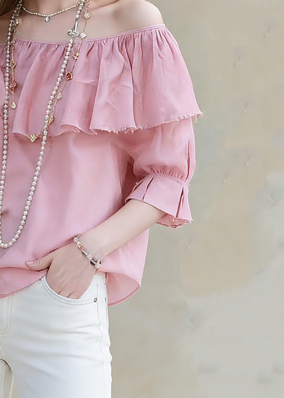 Cute Red Slash Neck Ruffled Patchwork Solid Top Half Sleeve