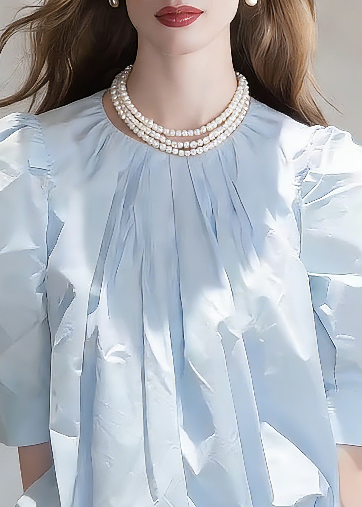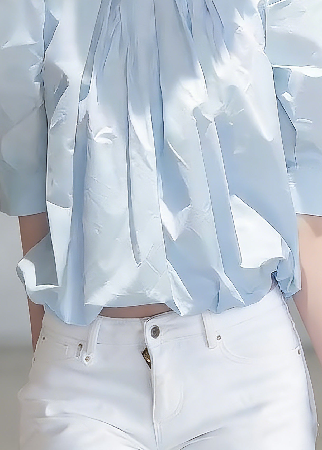 Fitted Blue Wrinkled Solid Top Short Sleeve