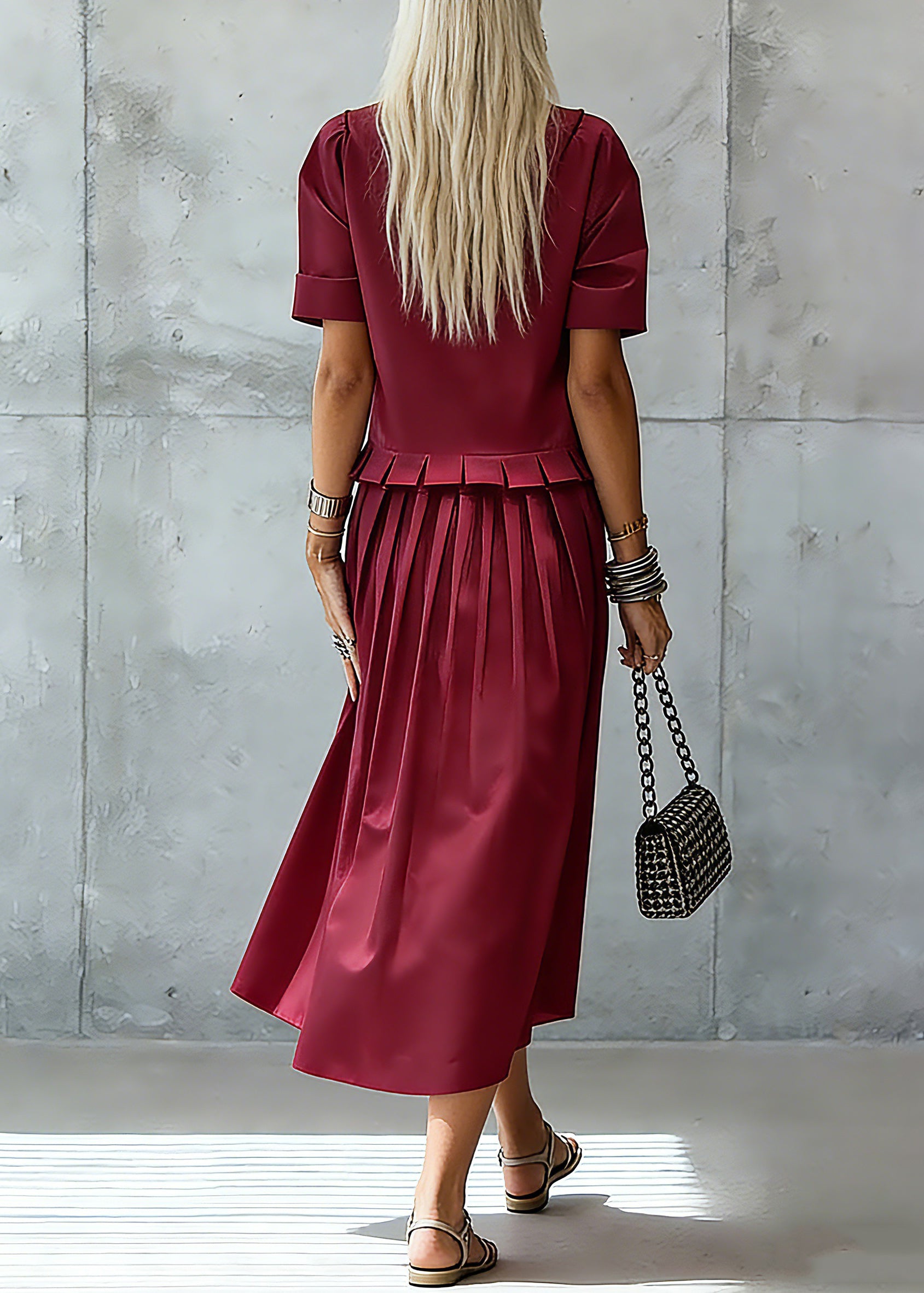 Stylish Red Ruffled Solid Maxi Dress Summer