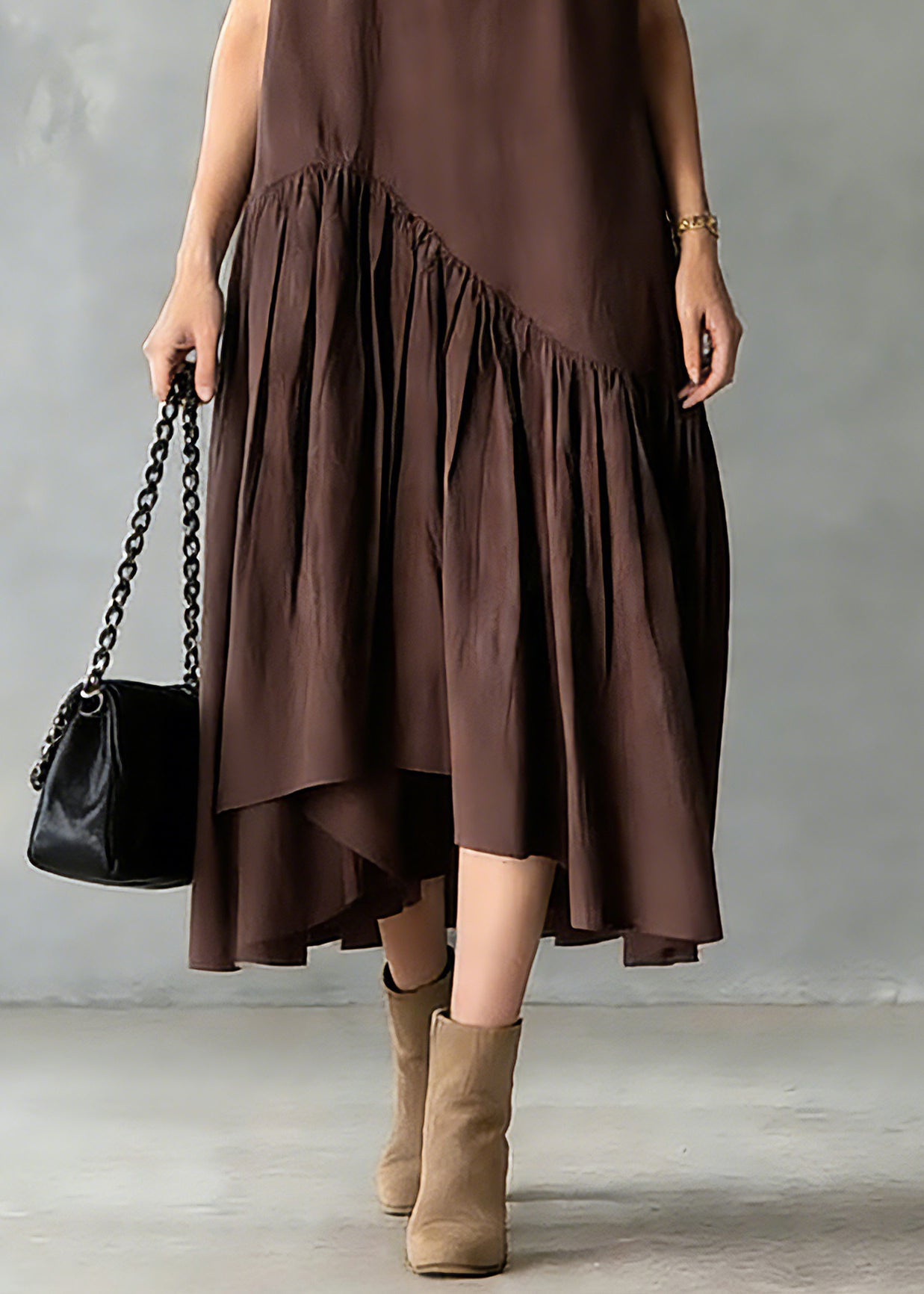 French Khaki Pockets Patchwork Cotton Dress Sleeveless