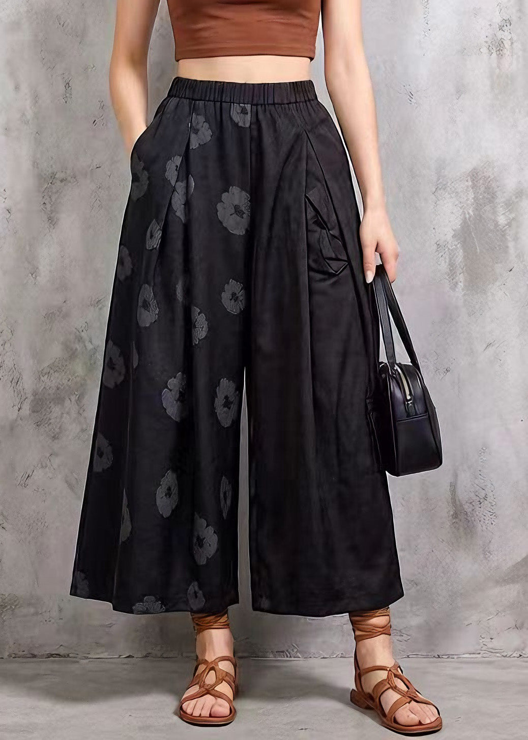 Modern Black Pockets Print Cotton Crop Pants Summer