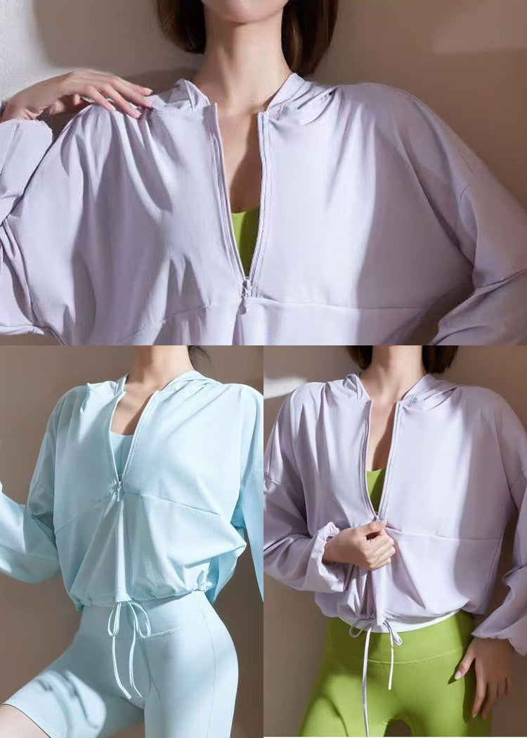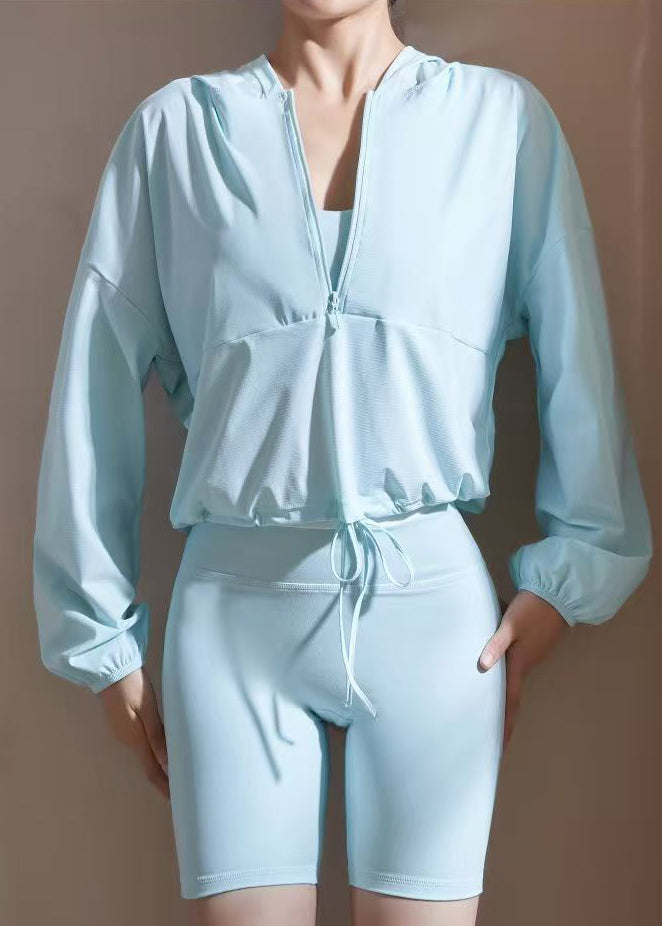 Italian Blue Hooded Pockets Spandex UPF 50+ Coat Jacket Spring