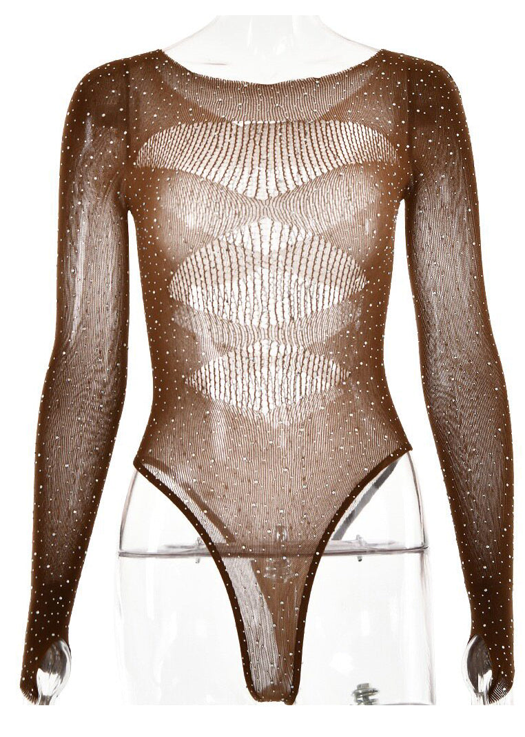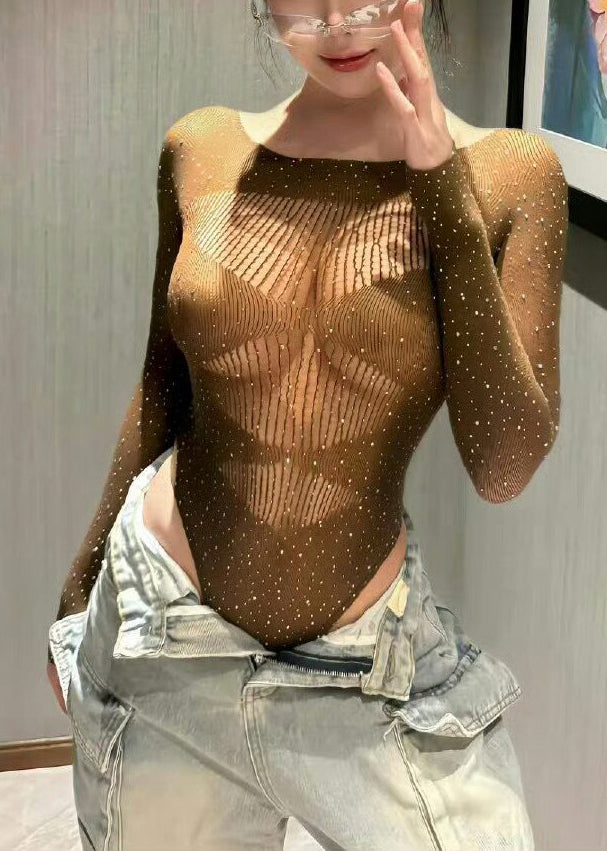 Modern Khaki Hollow Out Rhinestone One Piece Workout Suit