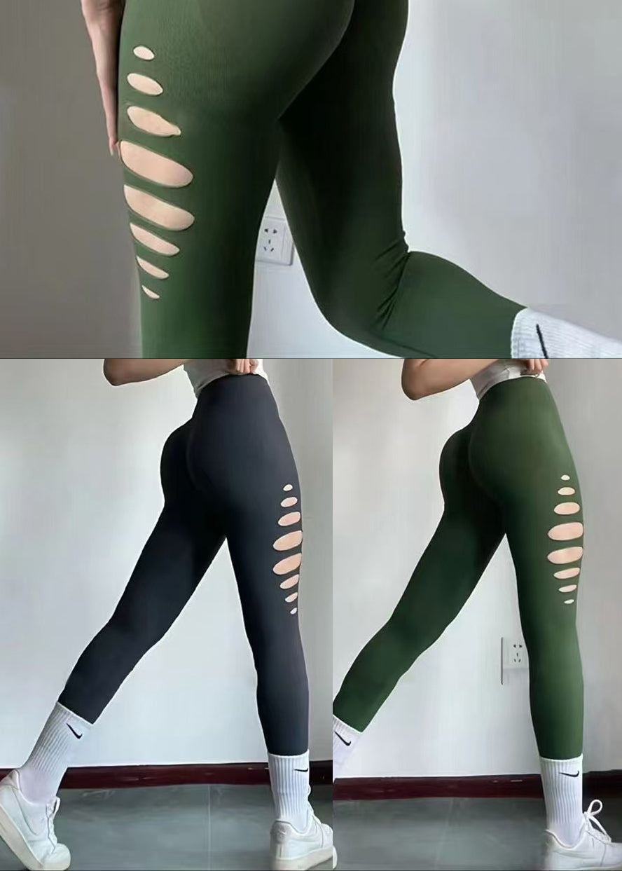 Stylish Tea Green Hollow Out Capri Gymshark Legging