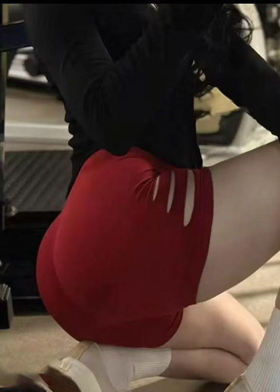 Styling Red High Waist Ripped Workout Gym Shorts Running Shorts Surf Leggings