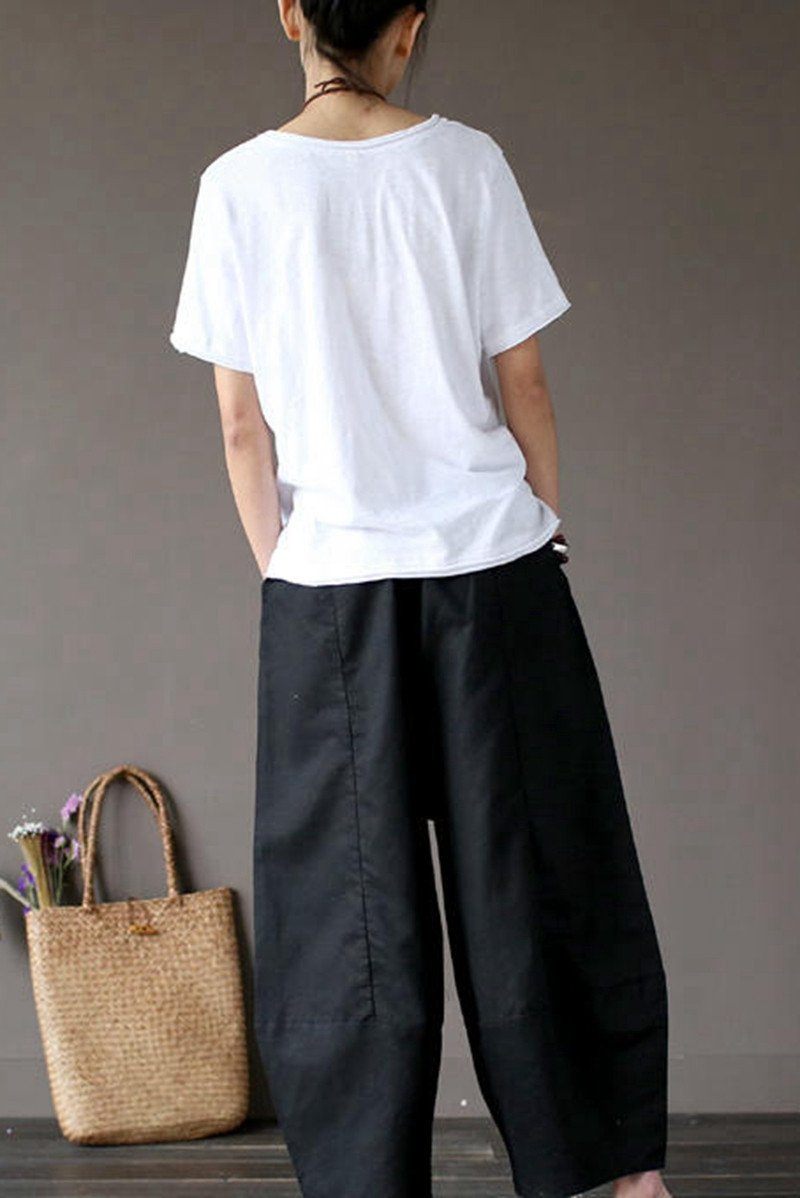 Black Loose Cotton Linen Casual Ankle Length Pants Women Clothes