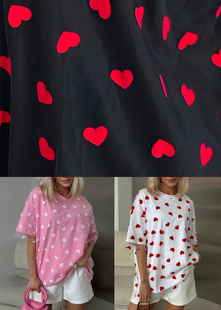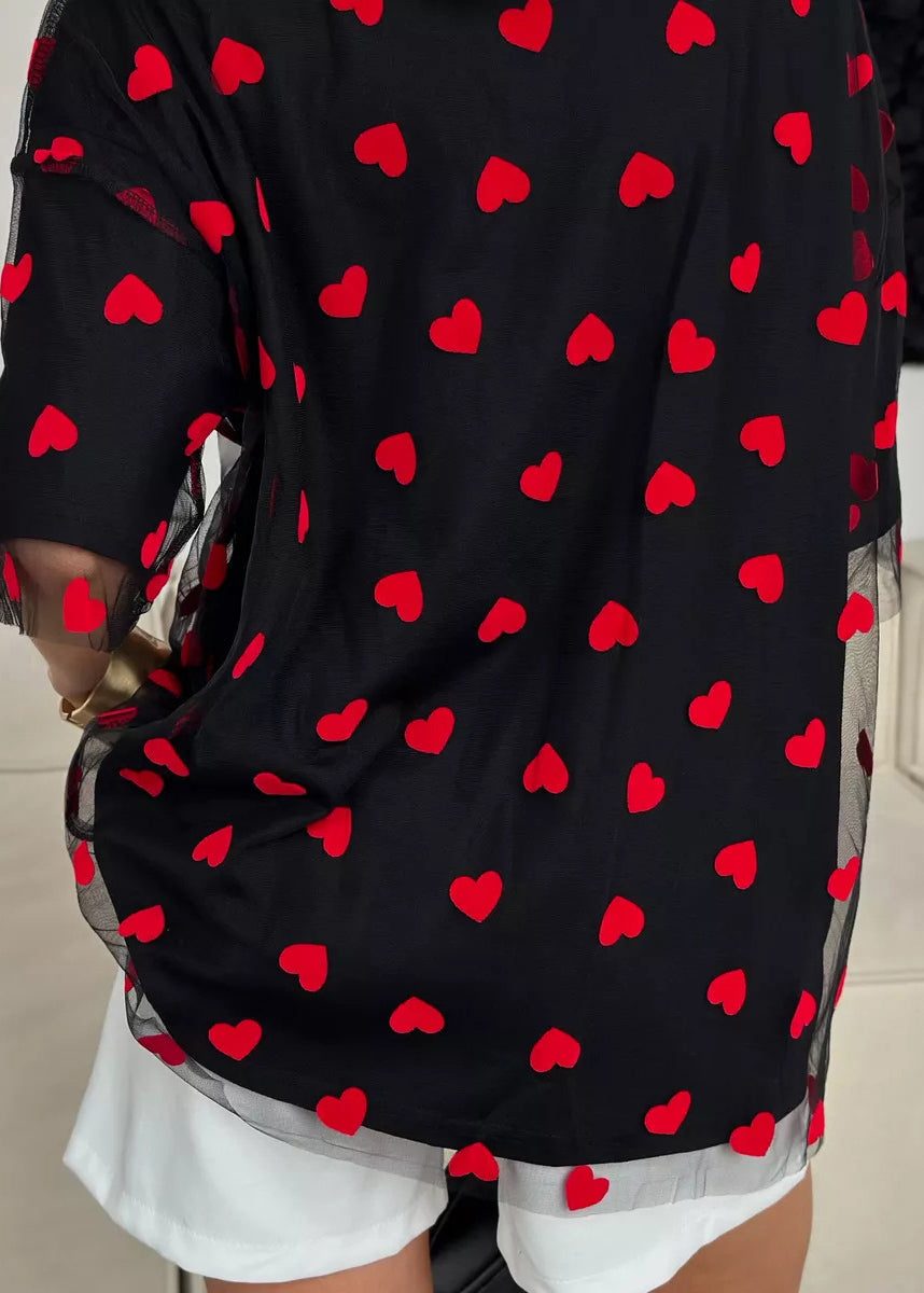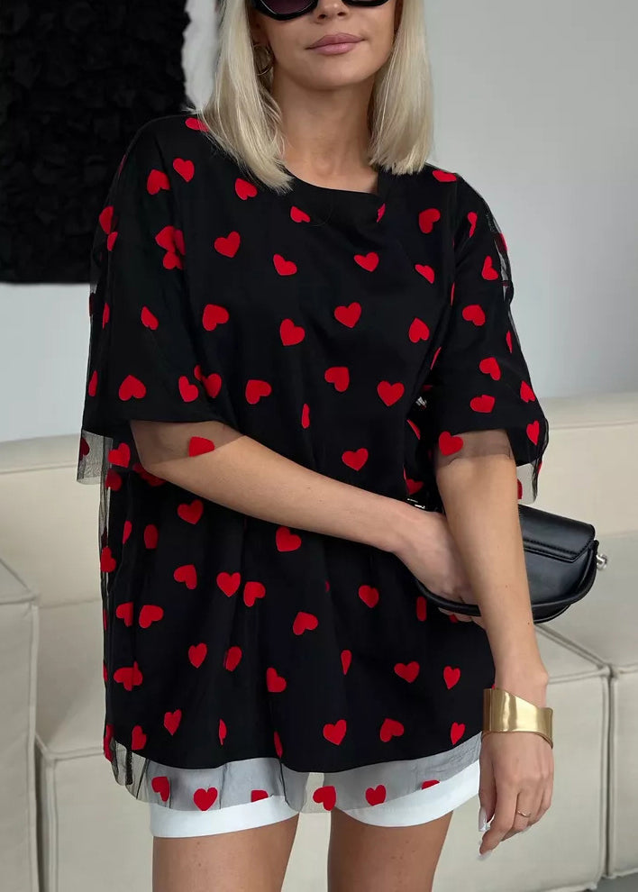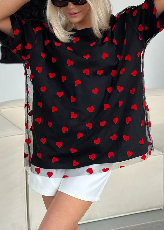 Black Love Tulle Patchwork T Shirt O Neck Summer