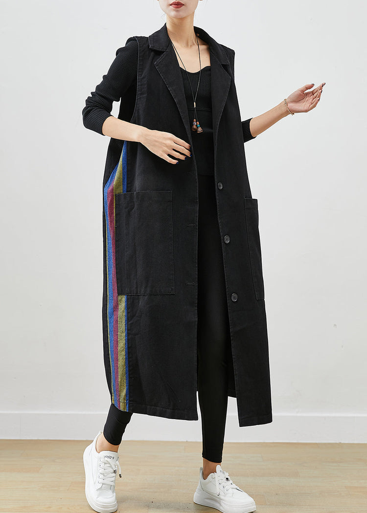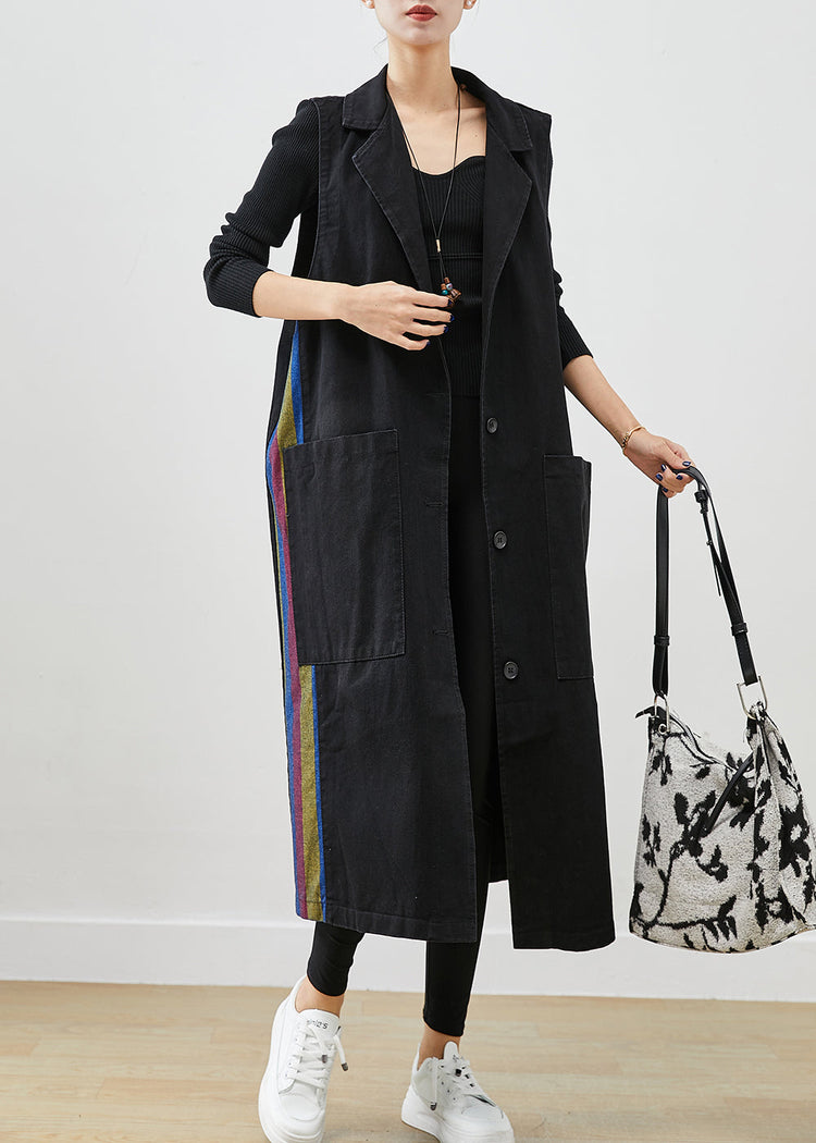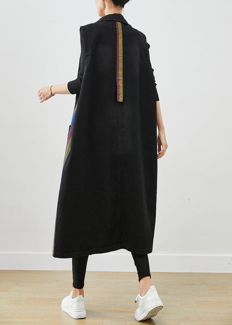 French Black Oversized Patchwork Multicolour Striped Denim Long Vests Fall