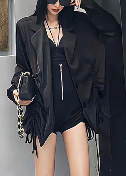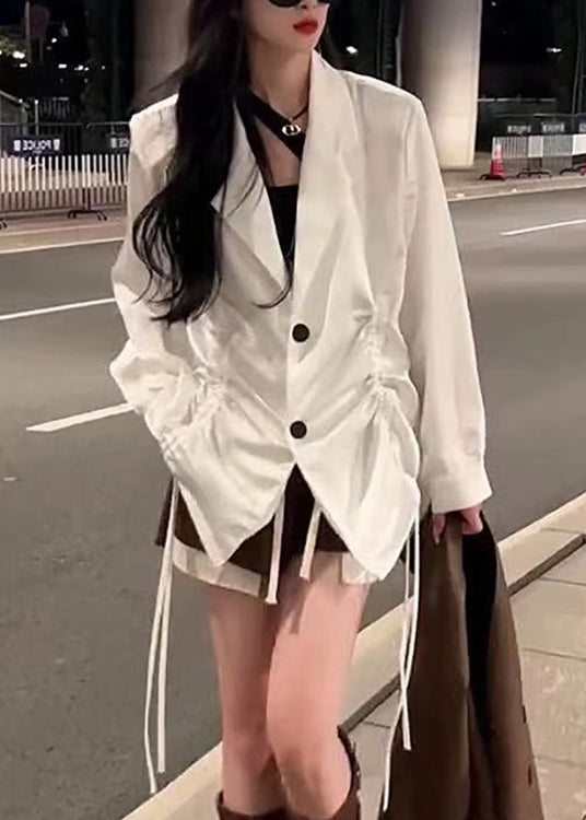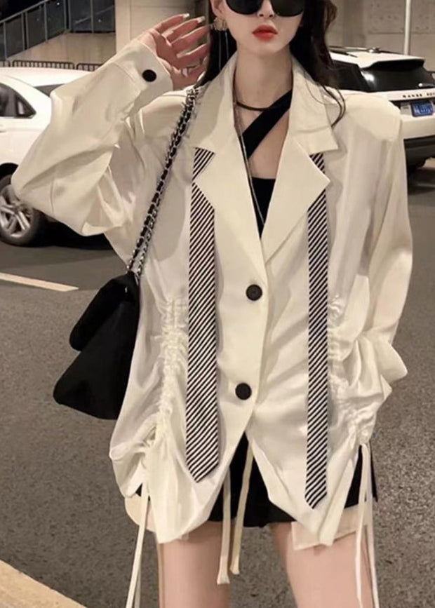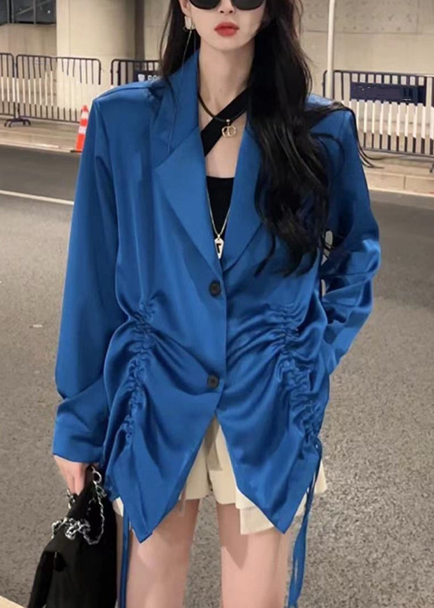 French Blue Peter Pan Collar Drawstring Patchwork Spandex Blouses Fall