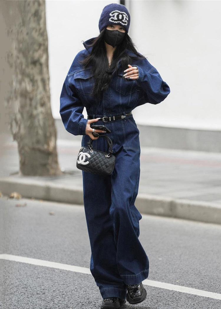 French Blue Peter Pan Collar Pockets Denim Jumpsuit Fall