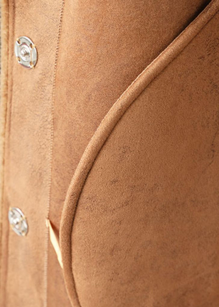 French Coffee Button Pockets Patchwork Fuzzy Fur Coat Winter