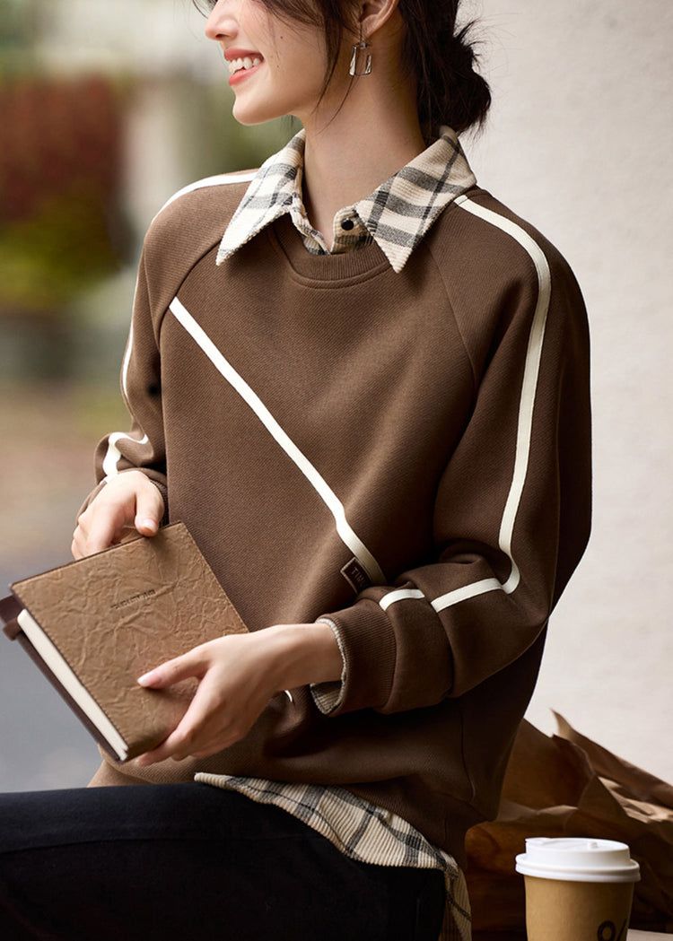 French Coffee Peter Pan Collar Patchwork Cotton Sweatshirt Spring