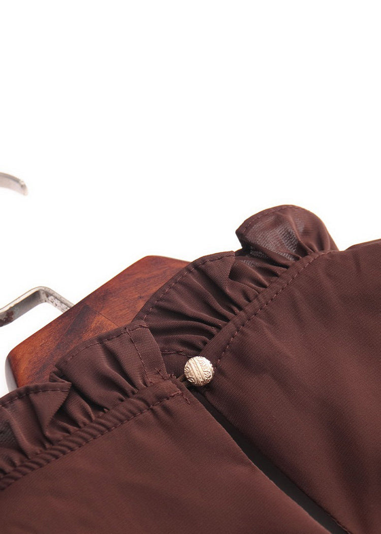 French Coffee Ruffled Patchwork Shirt Butterfly Sleeve