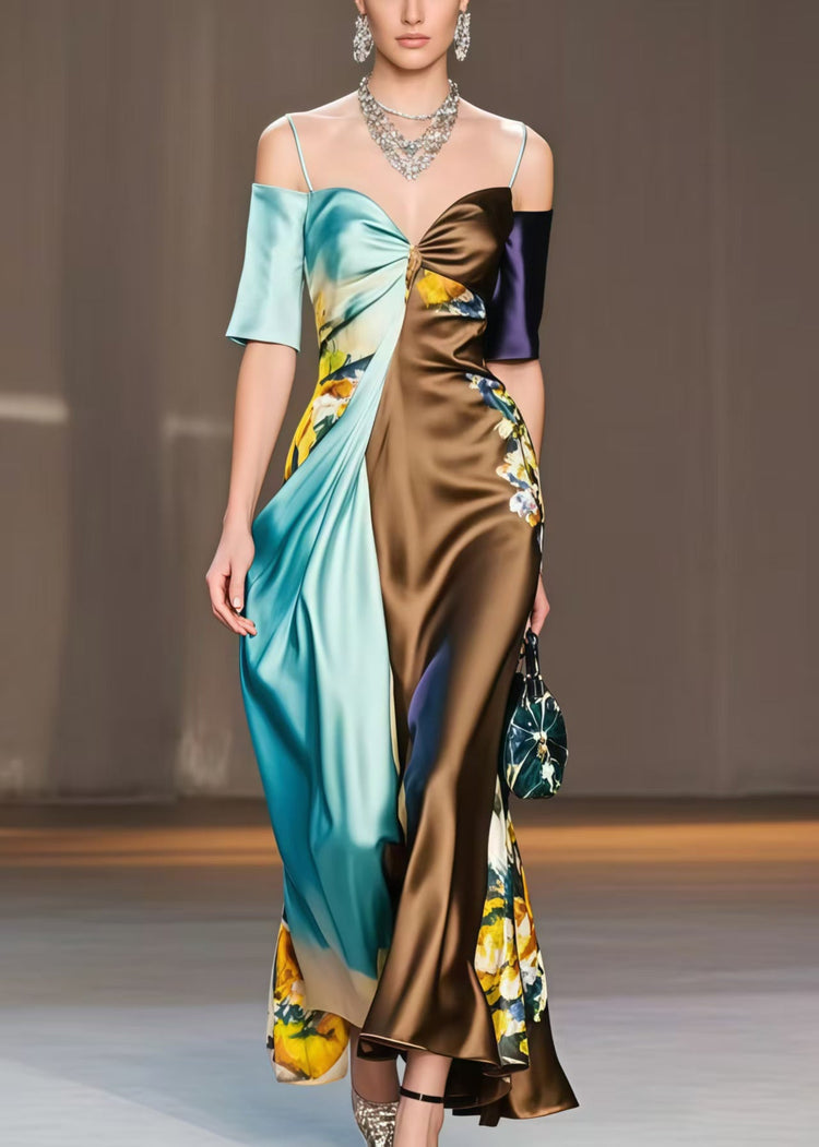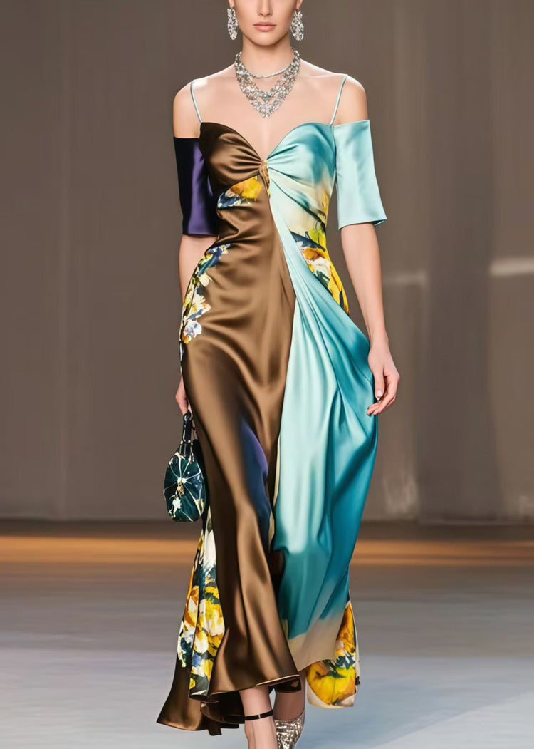French Colorblock Asymmetrical Design Cold Shoulder Vestidos Dresses Summer