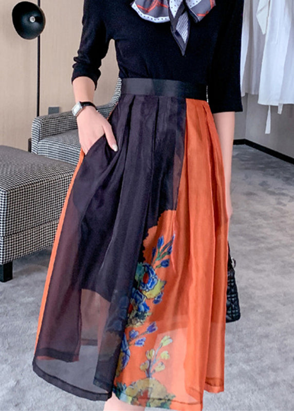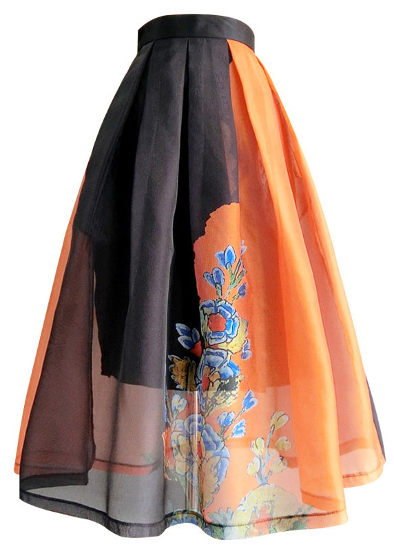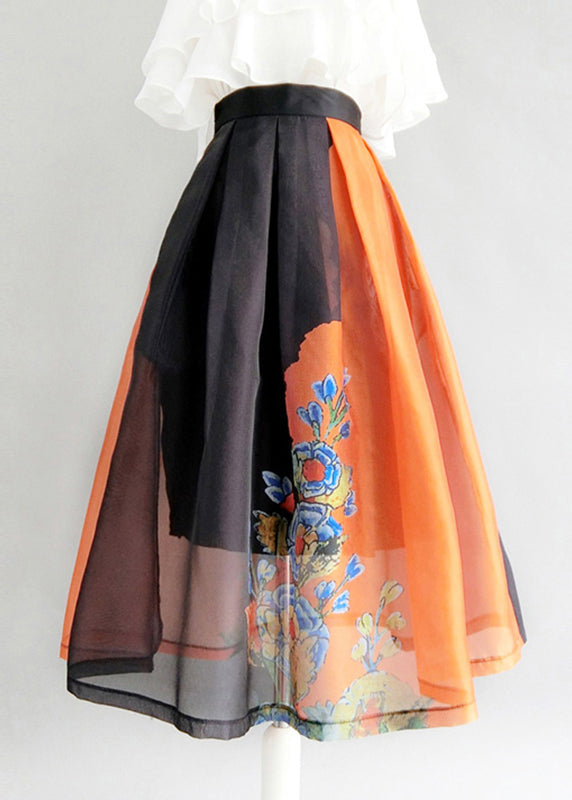 French Colorblock Print High Waist Tulle Skirts Summer