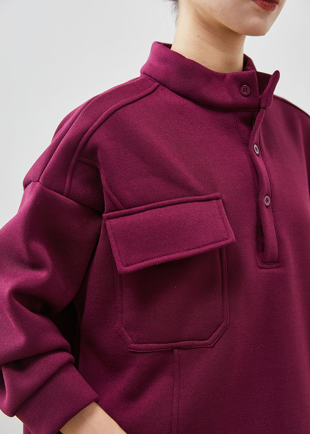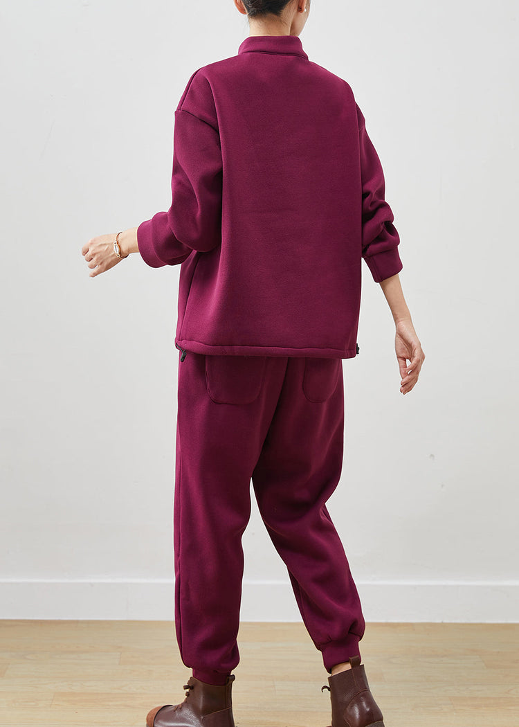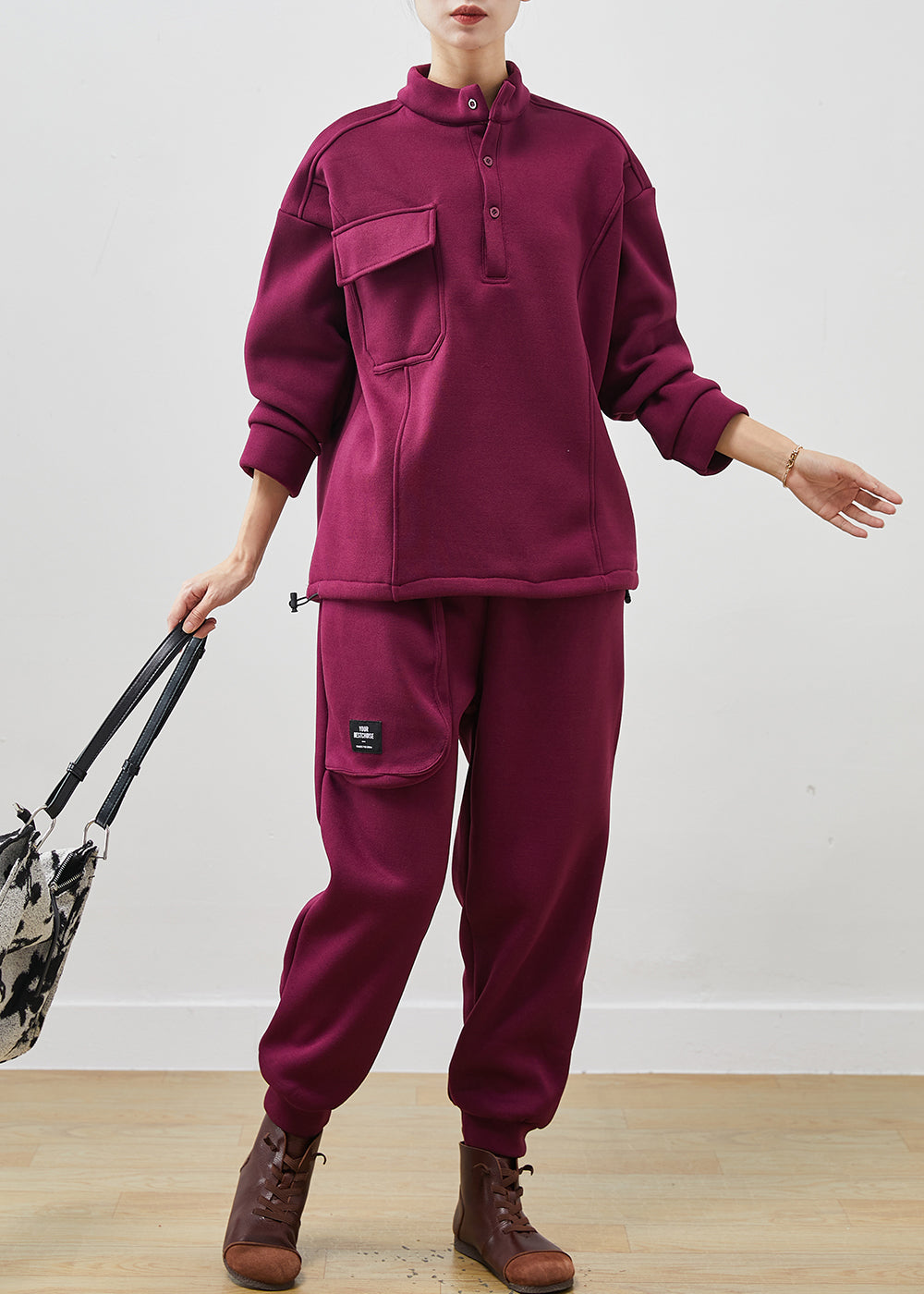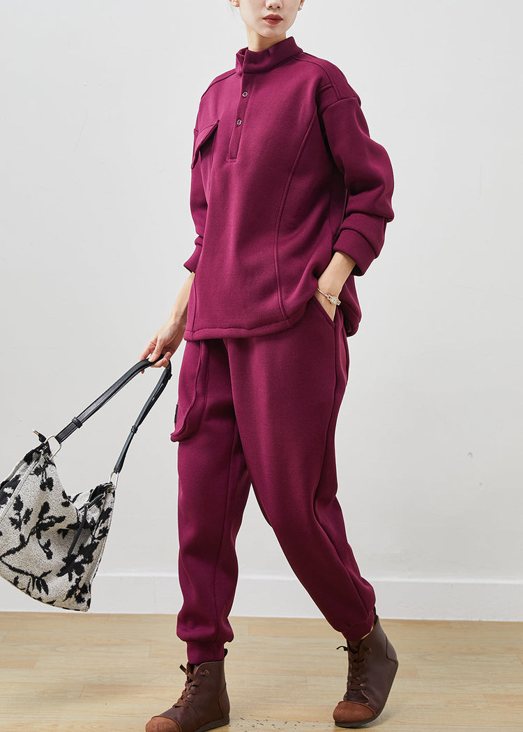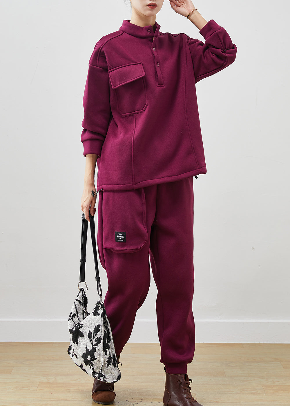 French Dull Purple Oversized Warm Fleece Two Pieces Set Winter